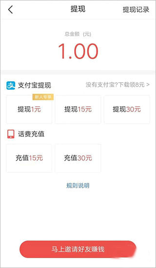 4、如果软件里面有金额的话是可以直接提现到支付宝的;