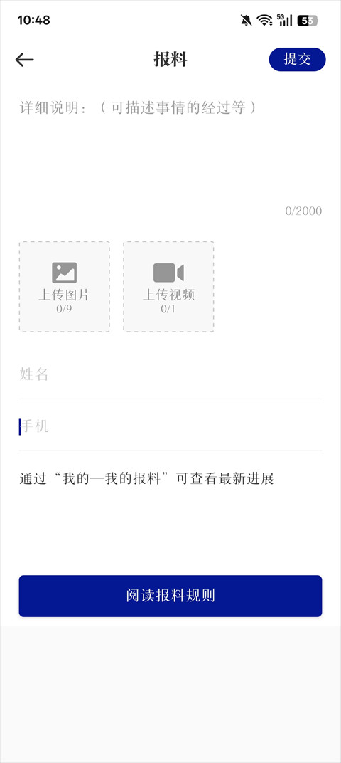 4、阅读好之后就可以完善报料信息,最后提交即可