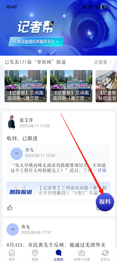 2、然后点击【报料】