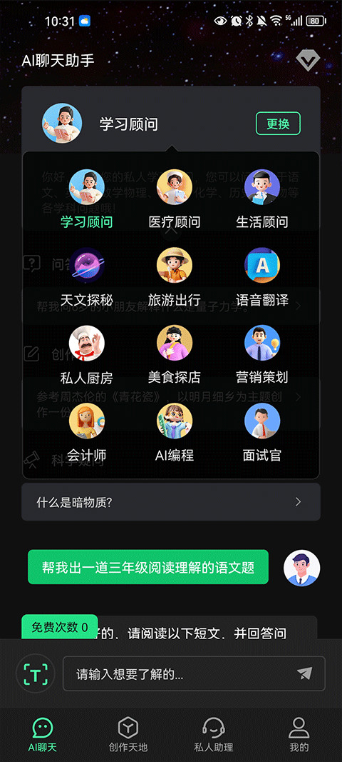 4、此外,用户还可以点击私人助理来解决你不同的问题。