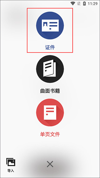 3、选择【证件】功能;