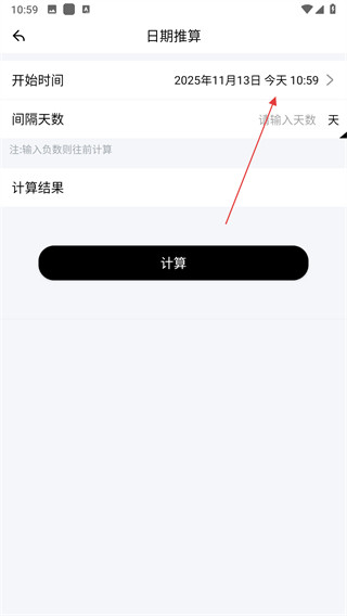 4、在日期推算页面输入间隔天数,点击计算按钮,即可完成日期推算。