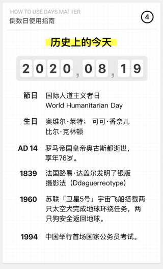 2、贴心小功能,有"节日倒数"和"历史上今天"让你更方便安排日程和了解历史。