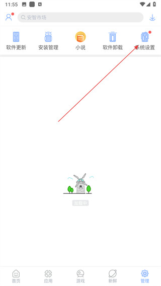 1、打开安智市场软件,点击底部导航栏的管理选项,进入管理页面。