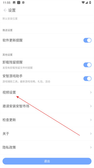 3、在设置界面里,找到视频设置选项并点击,进入视频设置页面。
