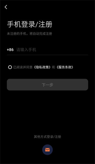 5、直接跳转至手机登录/注册界面,用手机号注册即可