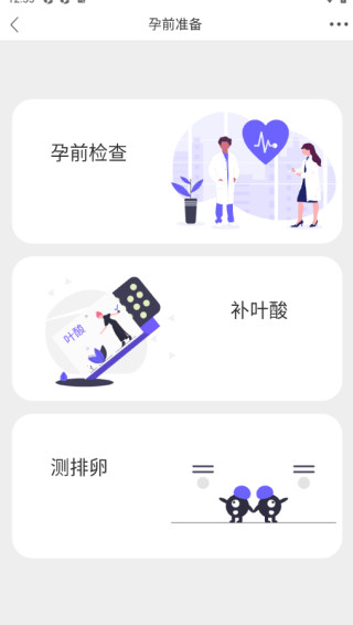 2、这里提供孕前检查、补叶酸、测排卵服务,点击一项进入。