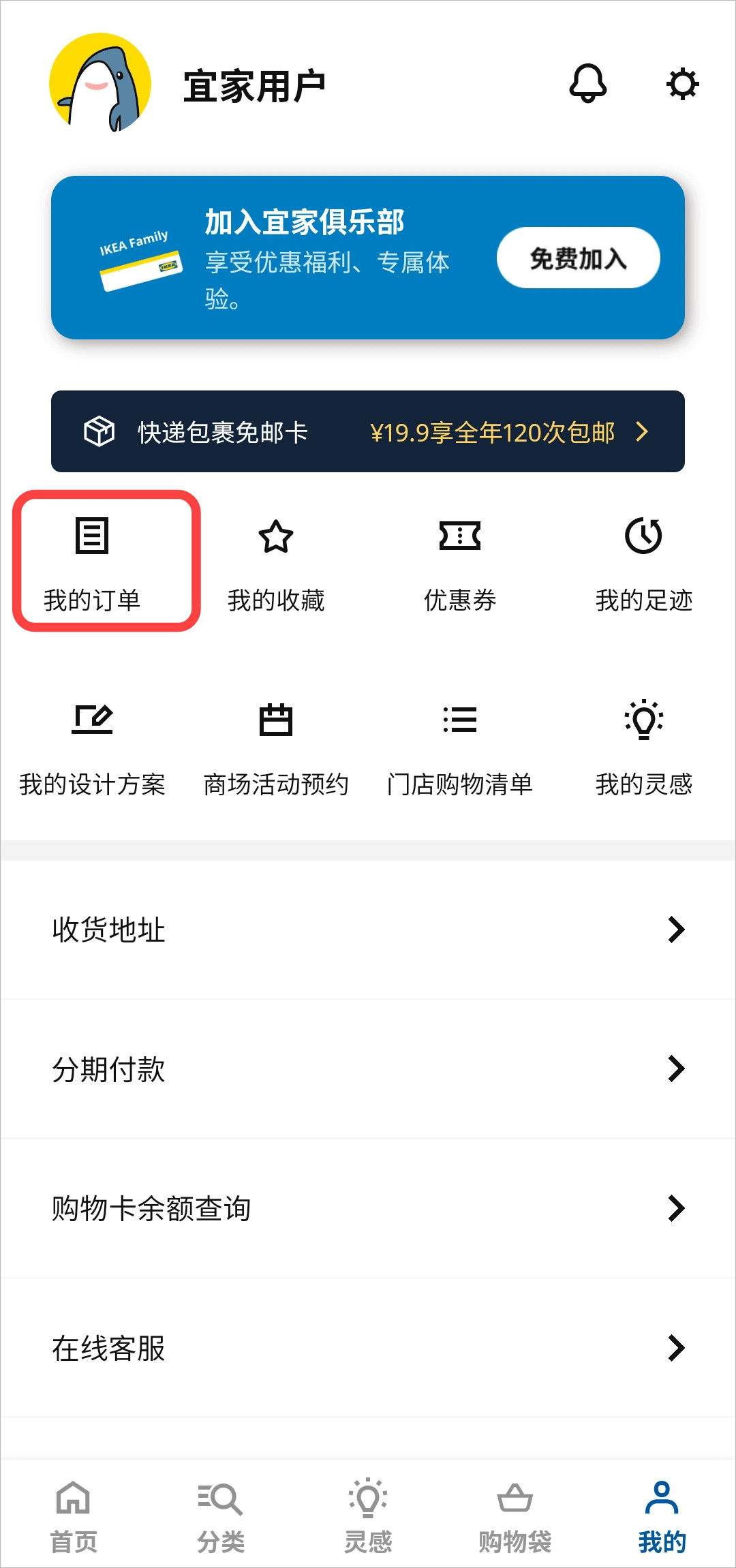 1、进入宜家家居app,在我的界面点击“我的订单”