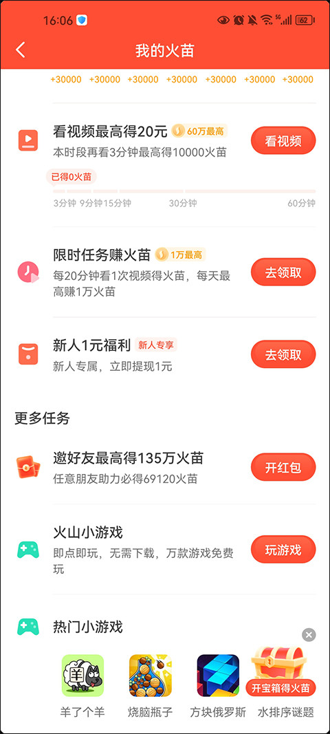 2、此外,在我的火苗福利中,还提供了很多任务,完成任务即可获得更多的火苗。