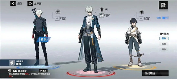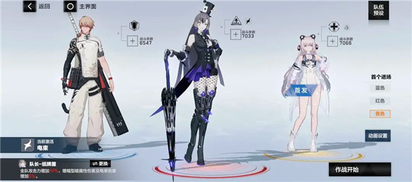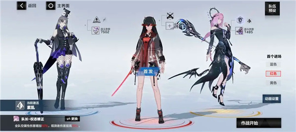 4、前期物理队(凛冽单c):亚里莎·回音(蓝位,队长),七实·风暴(红位,首发),罗塞塔·凛冽(黄位)