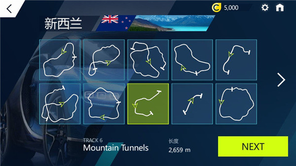 2、点击快速模式之后,我们可以选择地区既赛道,然后点击next;