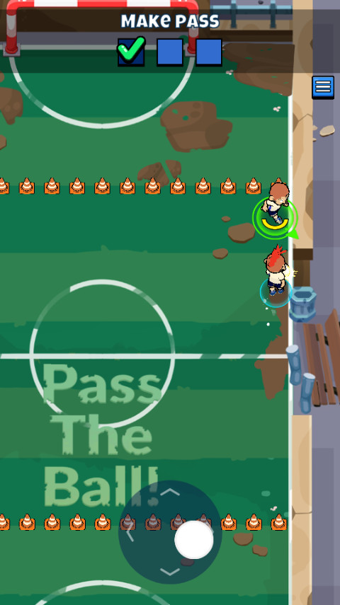 3、第三关需要你瞄准其它角色并释放操纵杆进行传球,传球三次以上即算闯关成功。