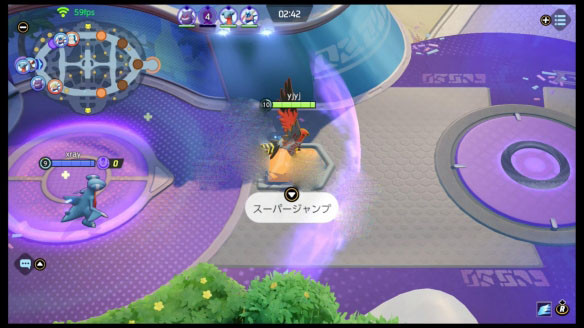 地图中间的野区周边有四个小型跳板,可以用它们来翻越墙壁。而对局进入后半阶段,基地中也会会出现大型跳板,踩到跳板上按↓键可以选择外围的得分点作为着陆点。除此之外,宝可梦落地时会有一个短暂的范围击飞效果。