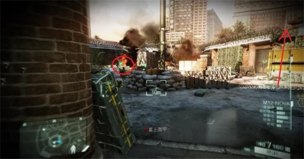 此处会解锁手雷,击败敌人后进入箭头指向的岔路。
