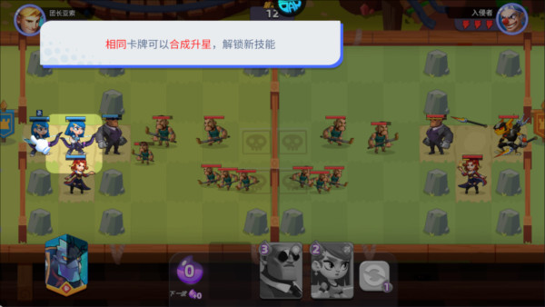 3、战局变化,临场发挥,随机的卡牌,随机的地形,随机的事件,随机的机关,在这变化莫测的战局中每时每刻都需要你的临场发挥和应对,而你的临场发挥有可能就是敌人的噩梦