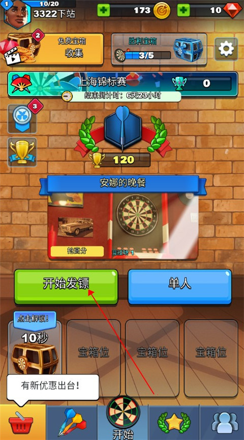 2、在线竞技,成为飞镖世界冠军,在这款特别参与的飞镖游戏中,与其他玩家在线竞技。学习高效并精准地投掷您的飞镖,掌握出手的力度、飞镖的角度、手指释放的时机。从新手到老手,从地区赛到世界赛,一步步往上爬。掌握您的技能,并成为飞镖世界冠军。在线竞技场,就是你的舞台。