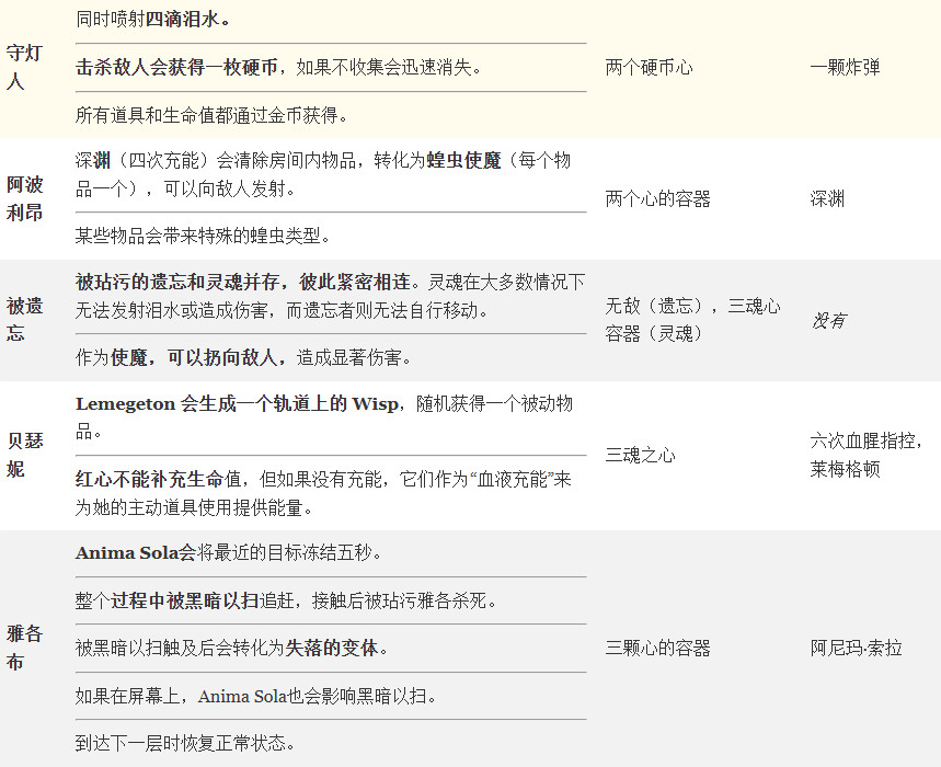 Note: 每个污秽角色都有自己的变体和能力。他们常常在某一方面有缺点,但在其他方面却表现出色。