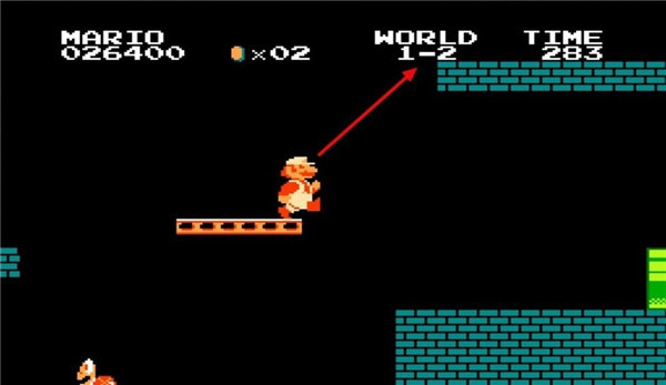 1、通关1-1关卡后到达1-2关卡,借助第二个移动梯走最上方的路。