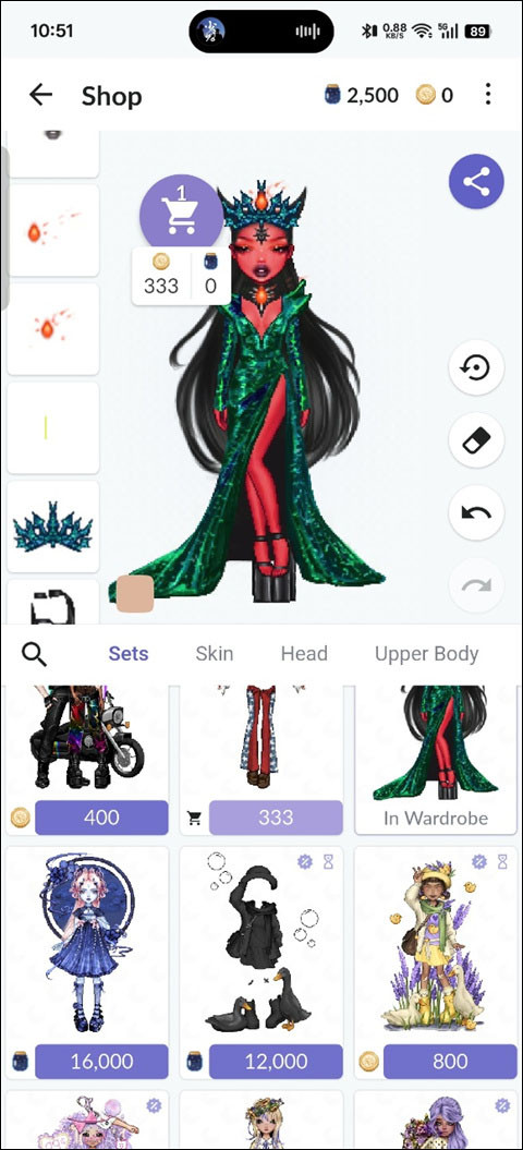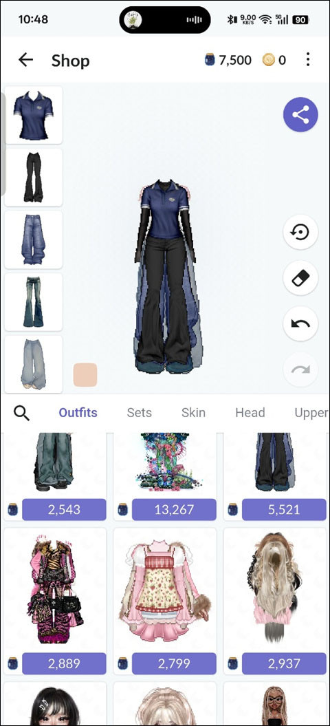 3、人物右侧有上一步和下一步,橡皮可以撤销角色身上的一切装扮。