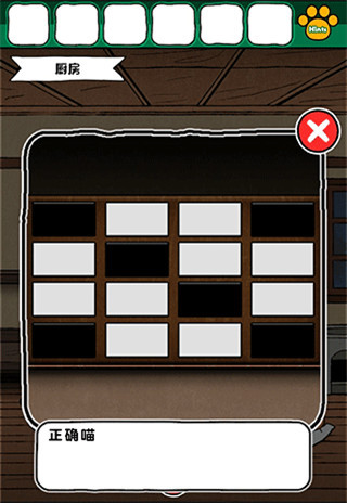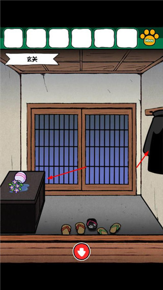2、在走廊的场景切换到客厅,点击烤鱼旁边的猫爪印记,获得满是灰尘的按钮
