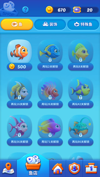 不同水族主题带来截然不同的视觉风格,从色彩到装饰细节都有明显差异,让玩家在推进过程中保持新鲜感。
