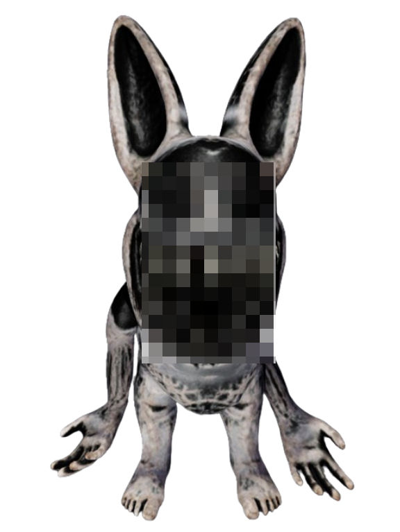 外貌:它看起来像一只兔子,但稍微胖一点,嘴里满是锋利的牙齿,脚像人,中间有白色的长耳朵,里面覆盖着黑色的绒毛。