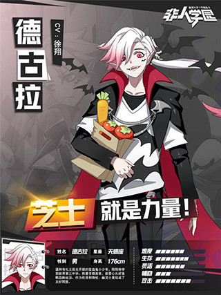 吸血鬼德古拉是一位【灵能】英雄,是学园战场上首个拥有重生的英雄,在觉醒后生存能力得到极大提升。基础能力方面,德古拉拥有较强的控制能力和恢复能力,伤害输出也十分爆炸,在加上优秀的恢复和减伤能力,生存得到了极高的保证。对线期德古拉十分强势,面对脆皮英雄容易产生击杀。而在团战时因为威胁性高,容易成为敌人控制和集火针对的目标,尤其需要小心的是减少治疗类技能。