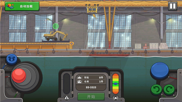 5、利用左侧的操纵杆,将货物精准放置到货运船上,随后点击“开始”执行任务。